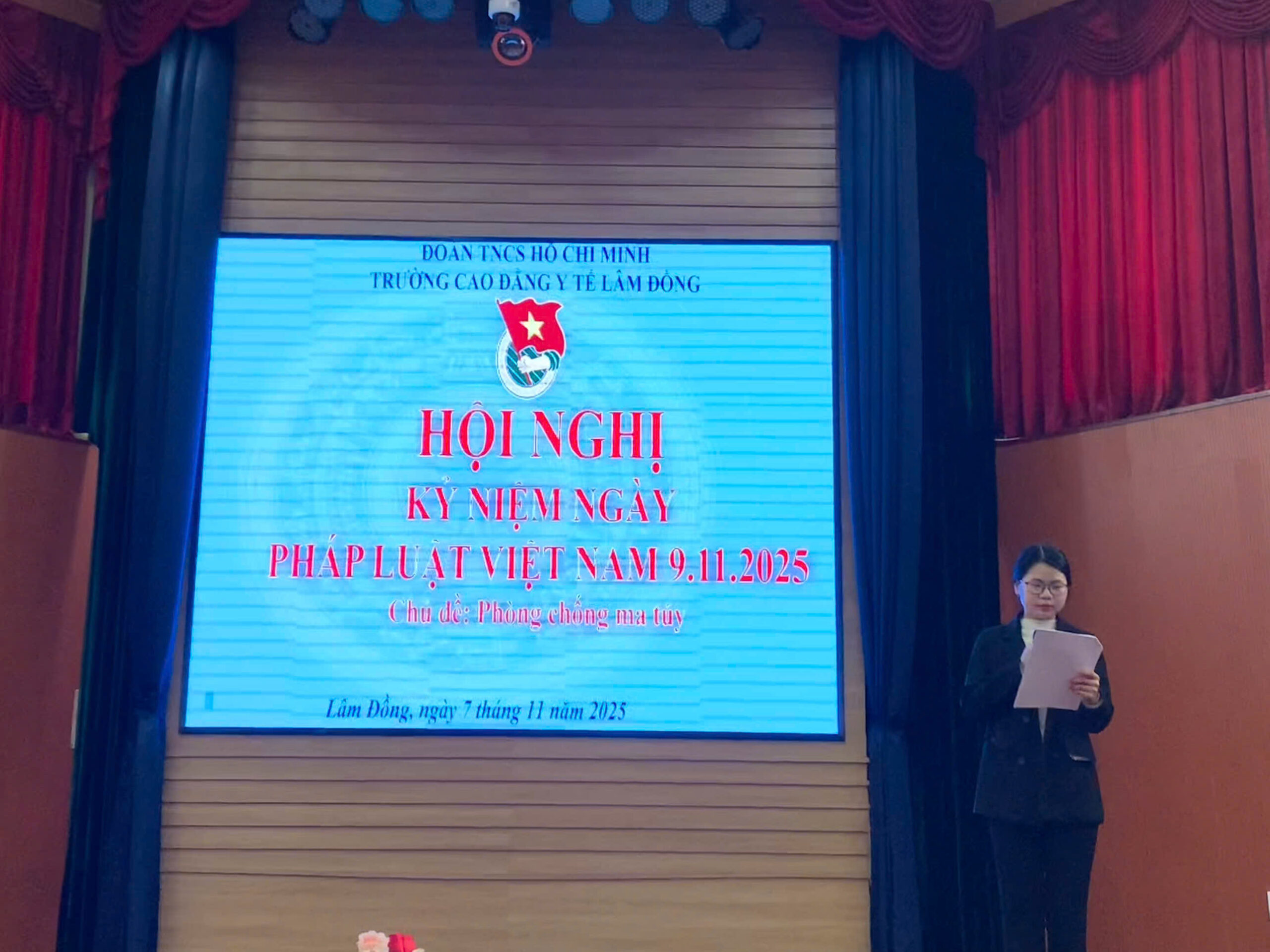 Nhằm tăng cường công tác tuyên truyền, phổ biến giáo dục pháp luật và nâng cao nhận thức cho học sinh, sinh viên về phòng, chống ma túy, đồng thời hưởng ứng Ngày Pháp luật Việt Nam (09/11), ngày 07 tháng 11 năm 2025, Ban Chấp hành Đoàn Trường Cao đẳng Y tế Lâm Đồng đã tổ chức Hội nghị tuyên truyền pháp luật về phòng, chống ma túy cho gần 200 đoàn viên toàn trường.