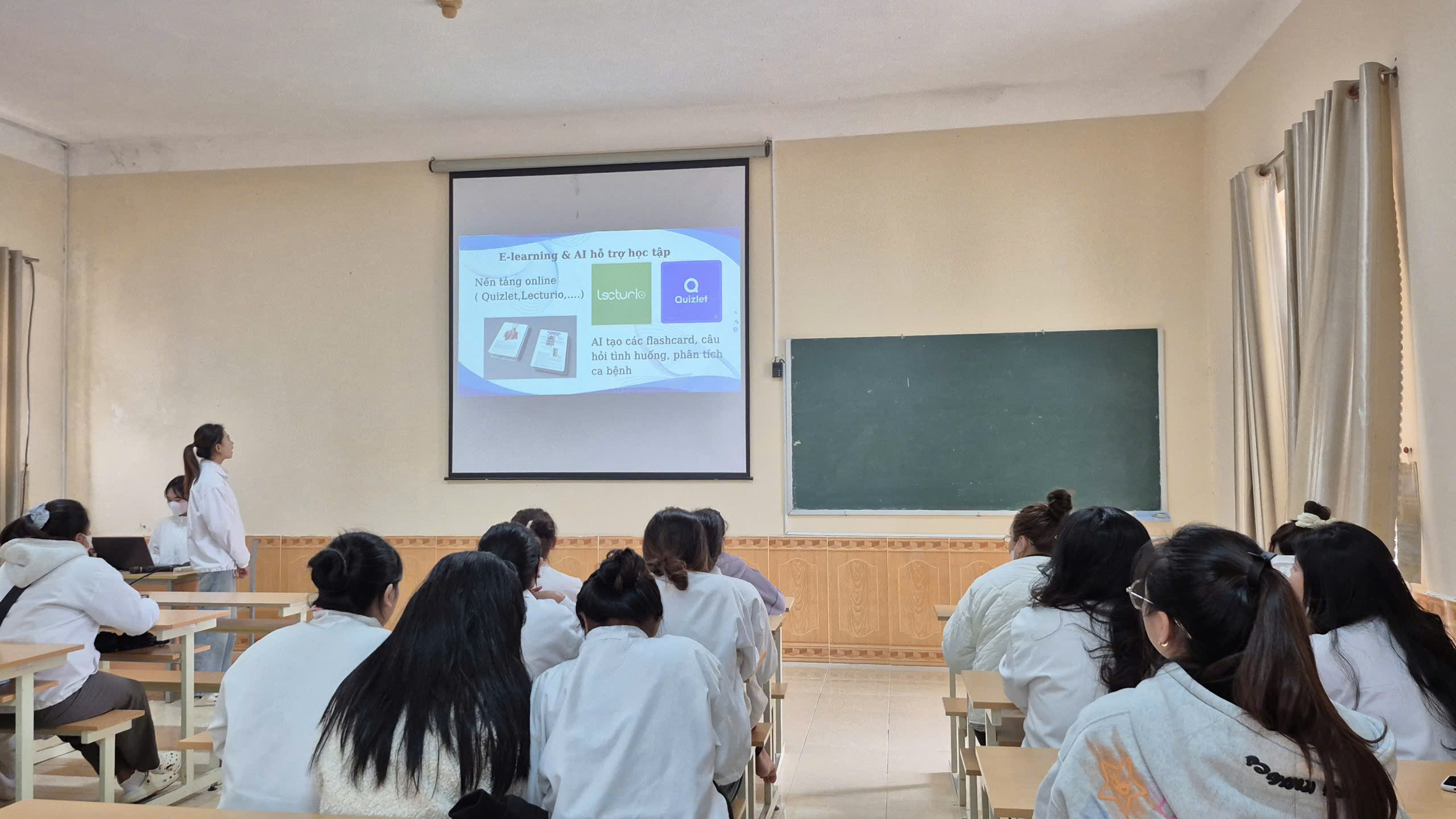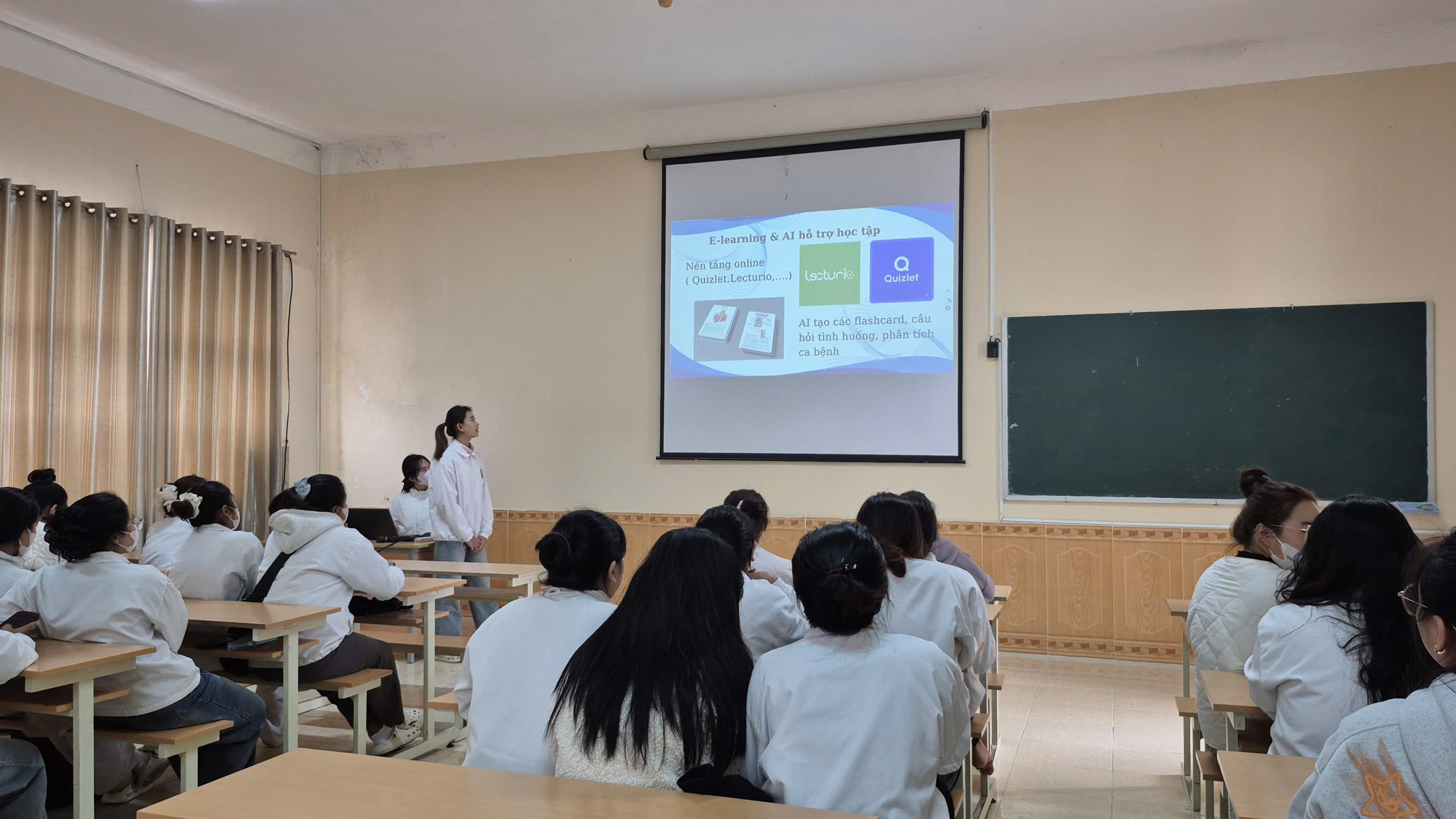 Ứng dụng E-learning và trí tuệ nhân tạo (AI) trong hỗ trợ học tập, xây dựng flashcard, câu hỏi tình huống và phân tích ca bệnh.