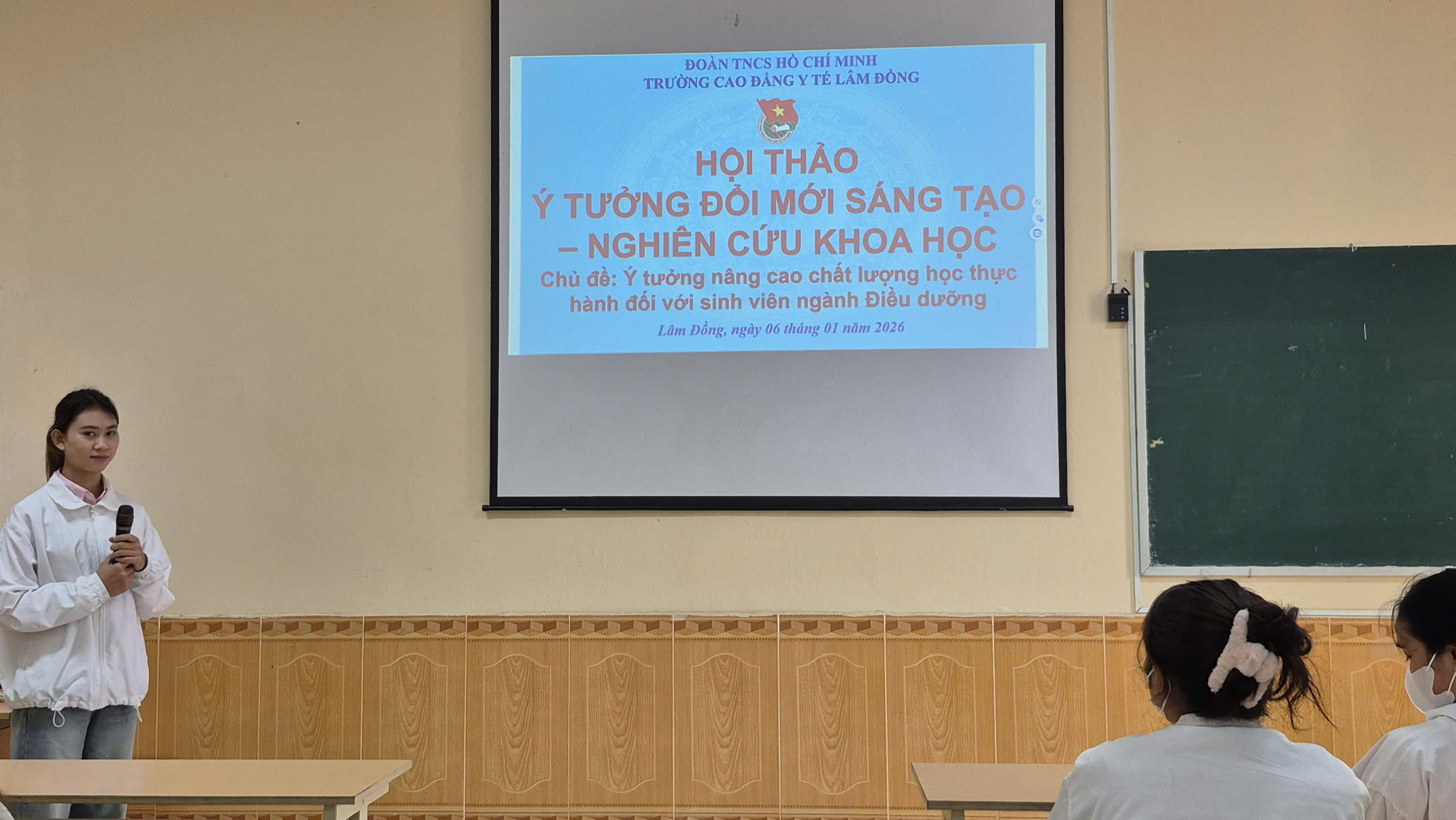 Ngày 06/01/2026, Đoàn TNCS Hồ Chí Minh Trường Cao đẳng Y tế Lâm Đồng đã tổ chức Hội thảo “Ý tưởng đổi mới sáng tạo – Nghiên cứu khoa học” với chủ đề “Ý tưởng nâng cao chất lượng học tập, thực hành đối với sinh viên ngành Điều dưỡng”.