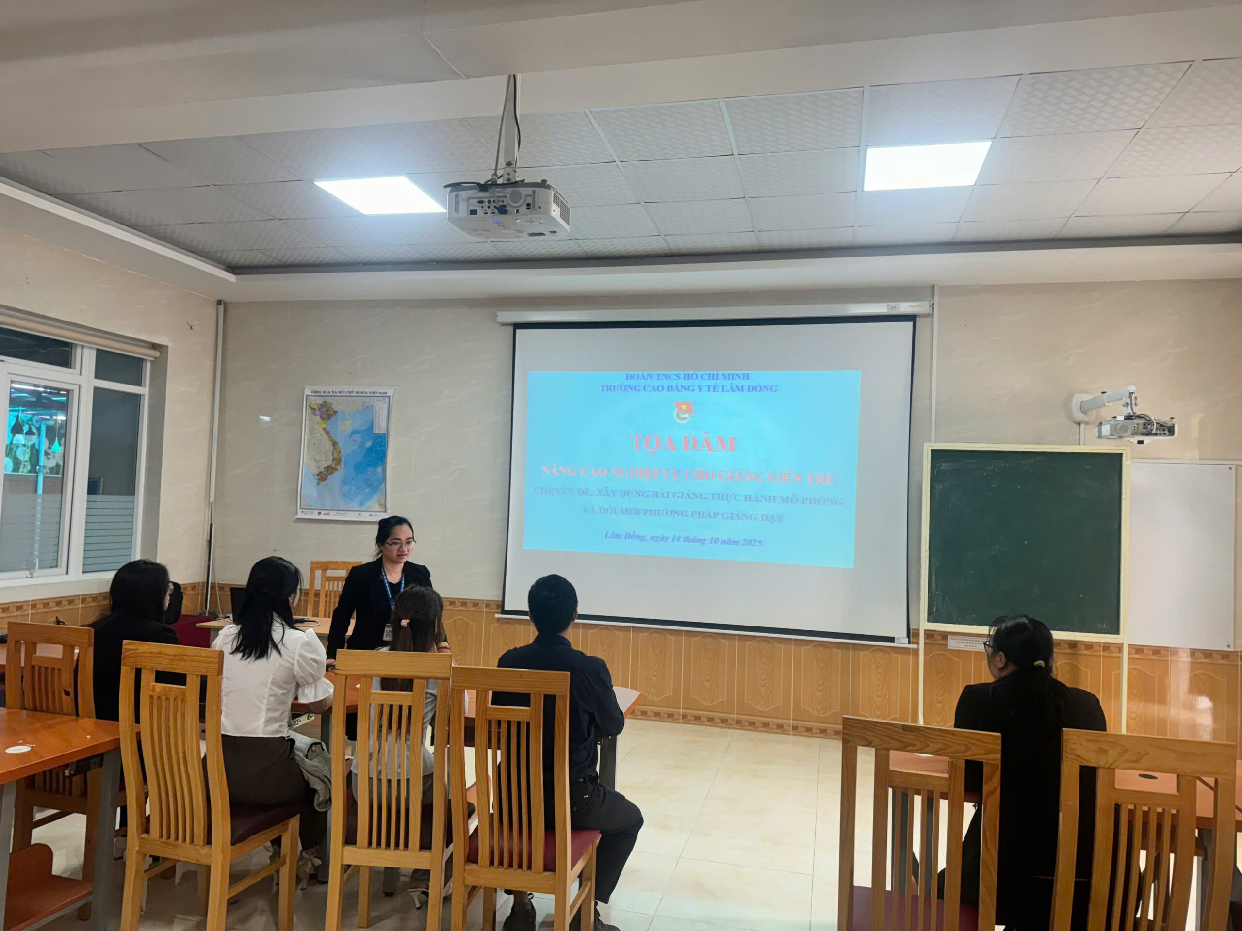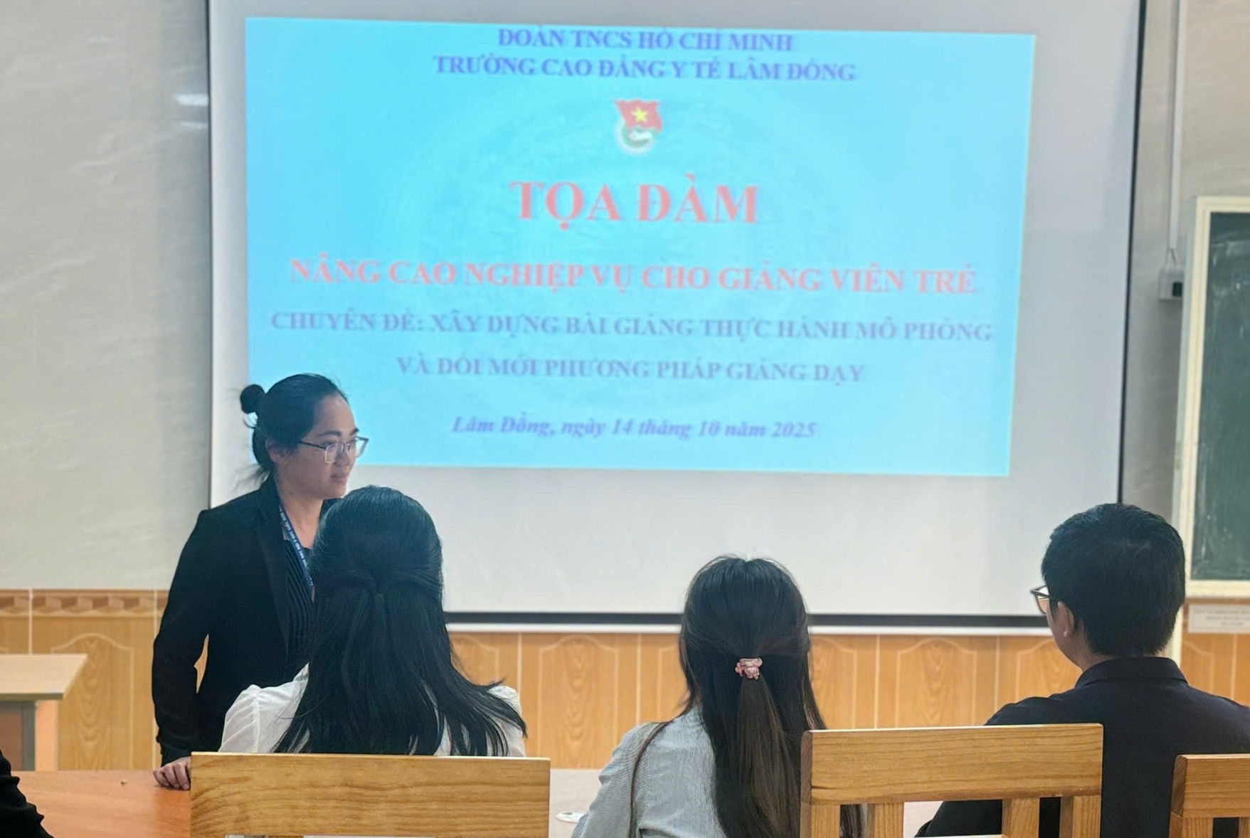 Sáng ngày 14/10/2025, Ban Chấp hành Đoàn Trường Cao đẳng Y tế Lâm Đồng đã tổ chức buổi tọa đàm “Nâng cao nghiệp vụ cho giáo viên trẻ”. Chương trình nhằm tạo môi trường giao lưu, học hỏi, chia sẻ kinh nghiệm trong công tác giảng dạy, đồng thời góp phần nâng cao năng lực nghề nghiệp cho đội ngũ giảng viên trẻ của nhà trường.