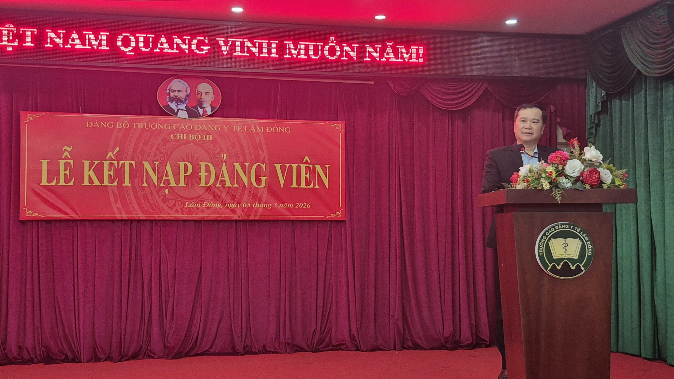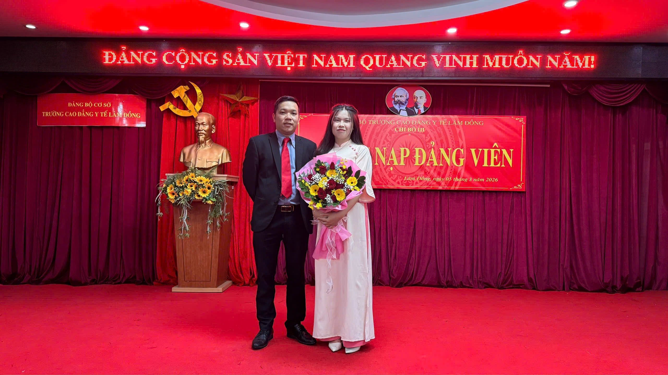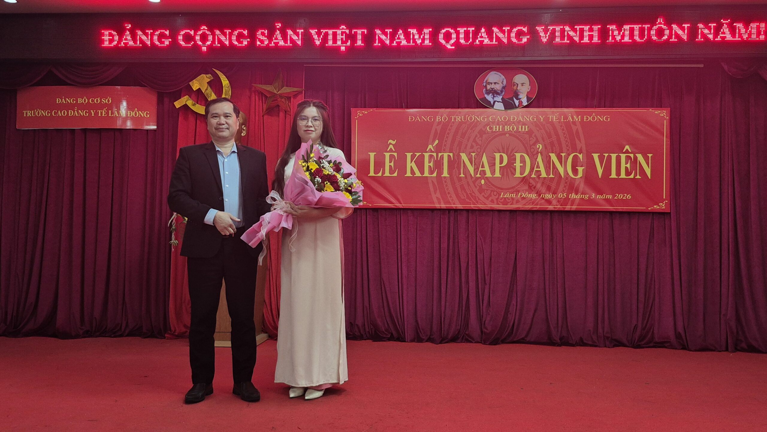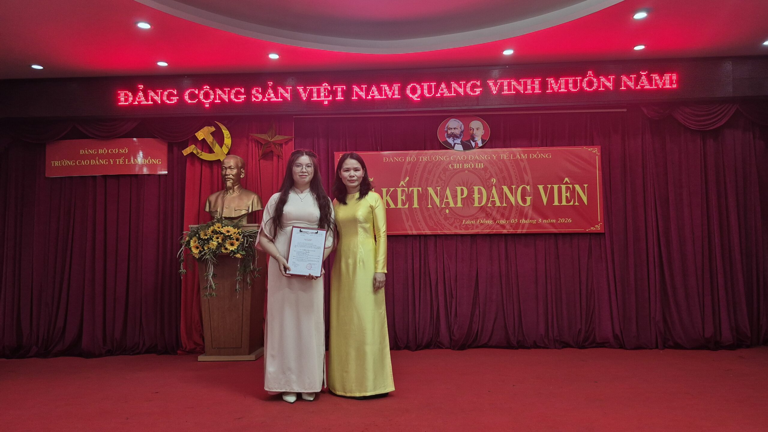 Thực hiện Điều lệ Đảng Cộng sản Việt Nam và quyết định của cấp ủy cấp trên, ngày 5 tháng 3 năm 2026 Chi bộ III trường Cao đẳng Y tế Lâm Đồng đã long trọng tổ chức Lễ kết nạp Đảng viên mới cho quần chúng ưu tú Lê Chế Quỳnh Anh vào Đảng Cộng sản Việt Nam.