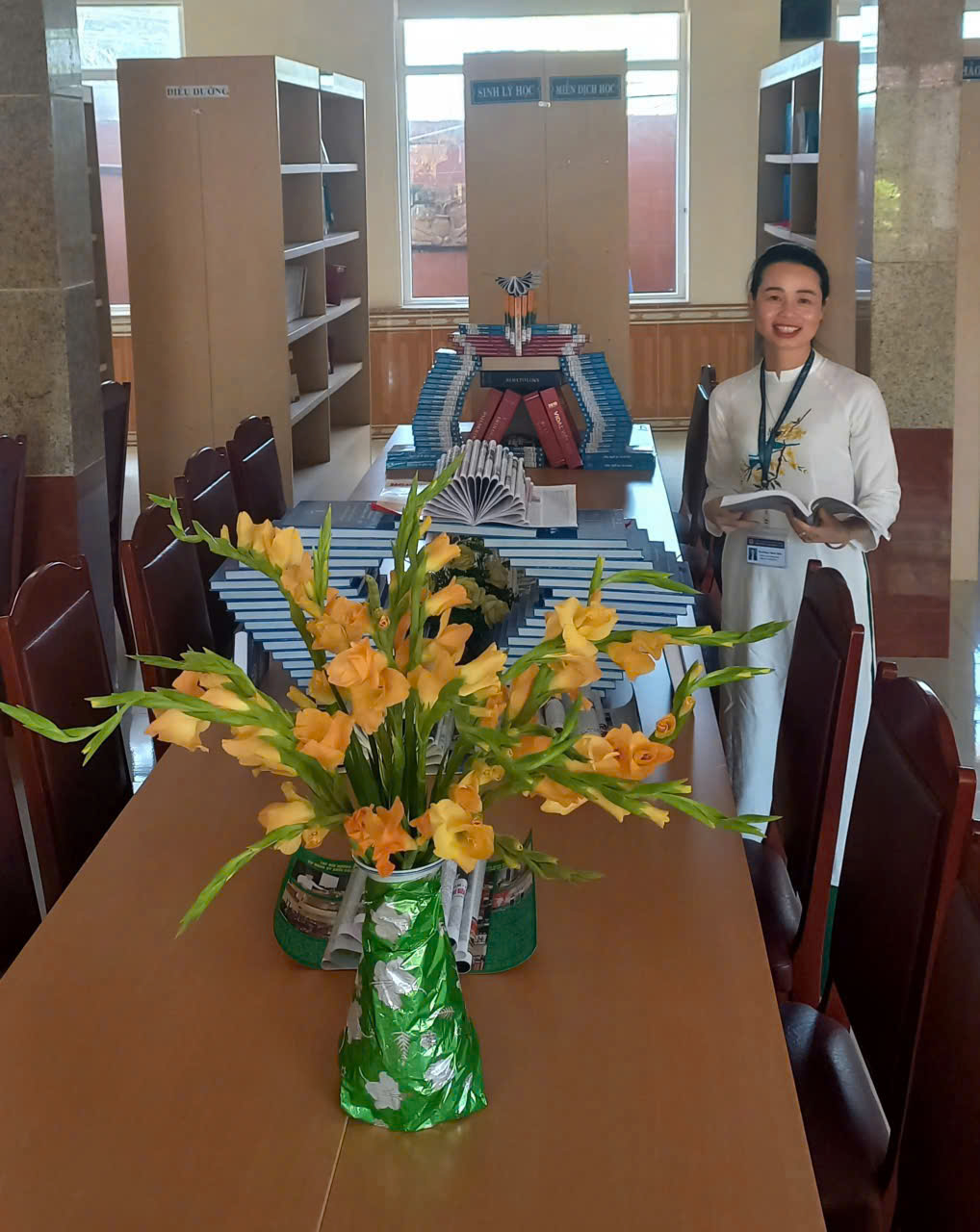 Hòa chung không khí sôi nổi của Ngày Sách và Văn hóa đọc Việt Nam 21/4, hãy nhìn vào góc thư viện thân quen của chúng ta – nơi các bạn sinh viên lớp Cao đẳng Điều dưỡng 15AB đang say sưa bên những mô hình sách nghệ thuật và những tập tài liệu quý giá. Đó chính là hình ảnh đẹp nhất của sự cầu thị và khát vọng vươn lên. Hình ảnh các cô giáo đại diện cho những người lái đò thầm lặng –vừa dạy chữ, vừa dạy học trò cách yêu những trang sách qua chính tấm gương sáng của bản thân mình. Trong không gian thư viện ấm cúng, sự say mê của các cô đã truyền đi một thông điệp mạnh mẽ: “ Sách là nguồn tri thức vô tận, và việc đọc chính là chìa khóa của sự phát triển”. Cảm ơn các cô đã là người truyền cảm hứng cho phong trào đọc sách tại trường chúng ta.
