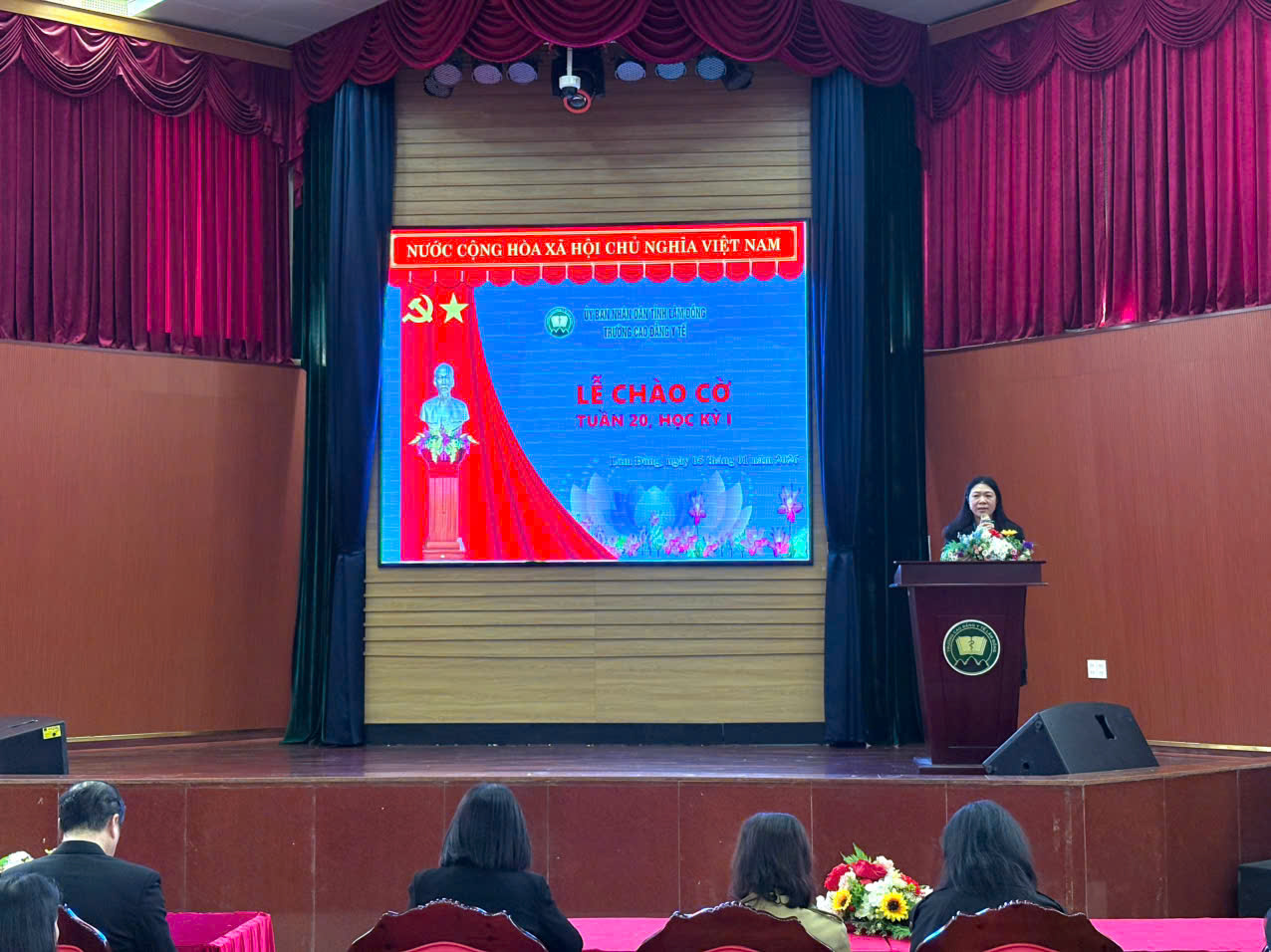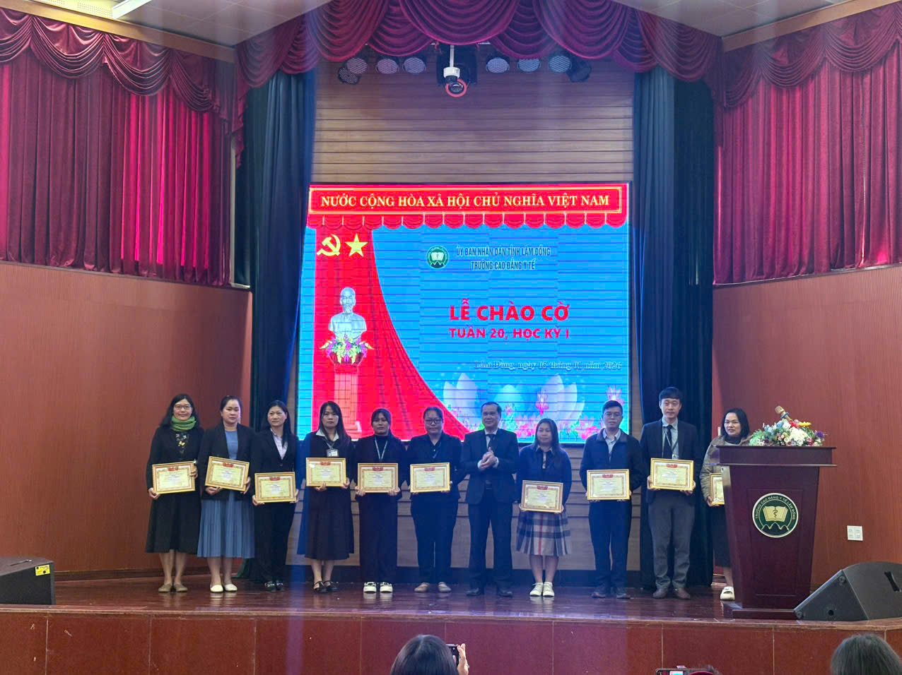 Buổi lễ chào cờ đầu năm diễn ra trong không khí trang nghiêm, phấn khởi, tạo động lực tích cực cho viên chức, người lao động và học sinh, sinh viên toàn trường bước vào năm mới với tinh thần trách nhiệm, đoàn kết và quyết tâm hoàn thành tốt các nhiệm vụ được giao, góp phần xây dựng Trường Cao đẳng Y tế Lâm Đồng ngày càng phát triển.